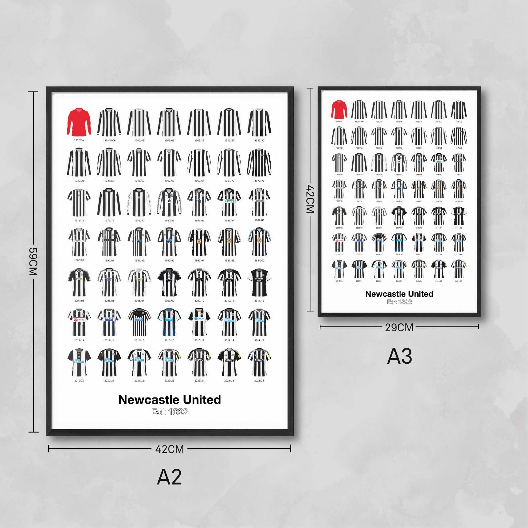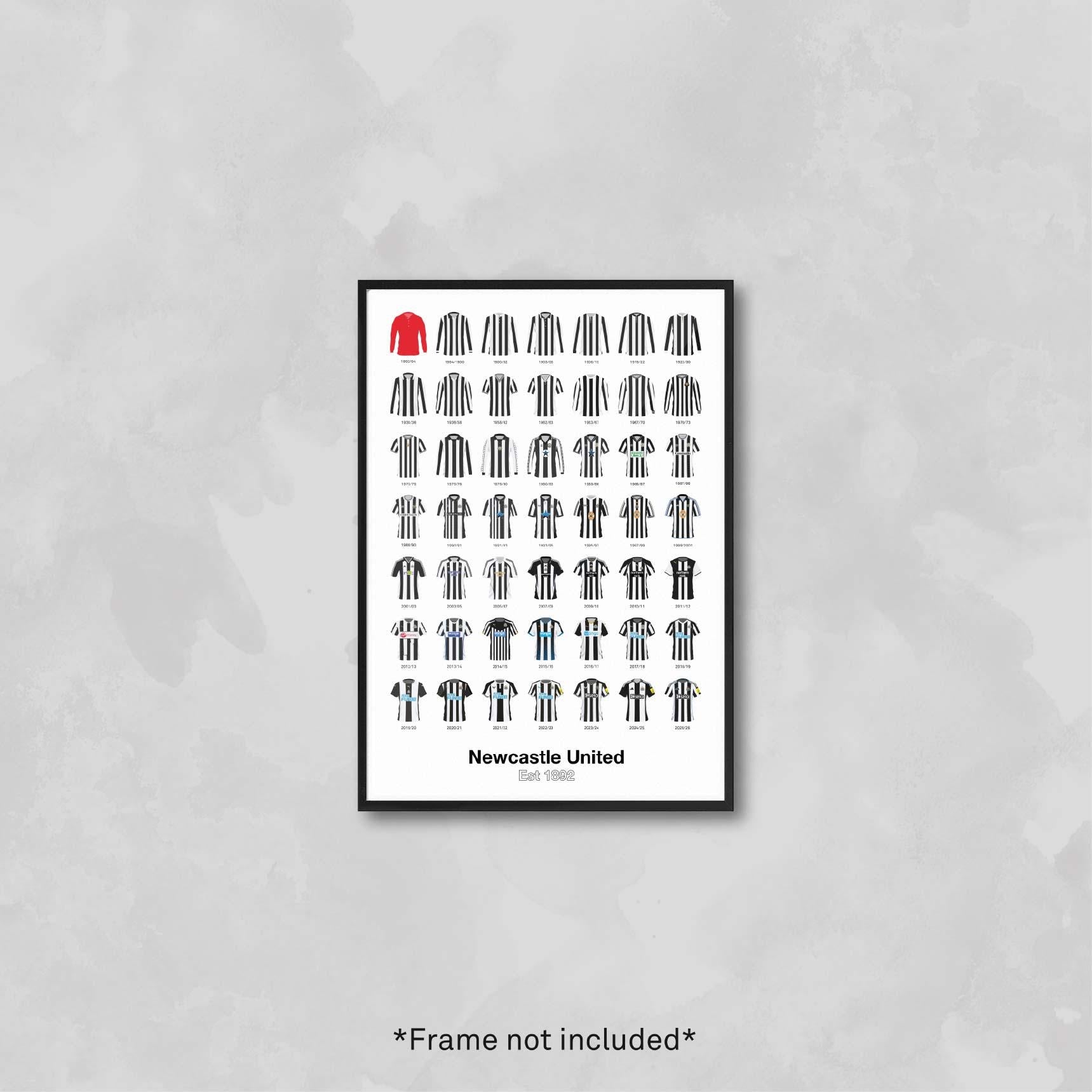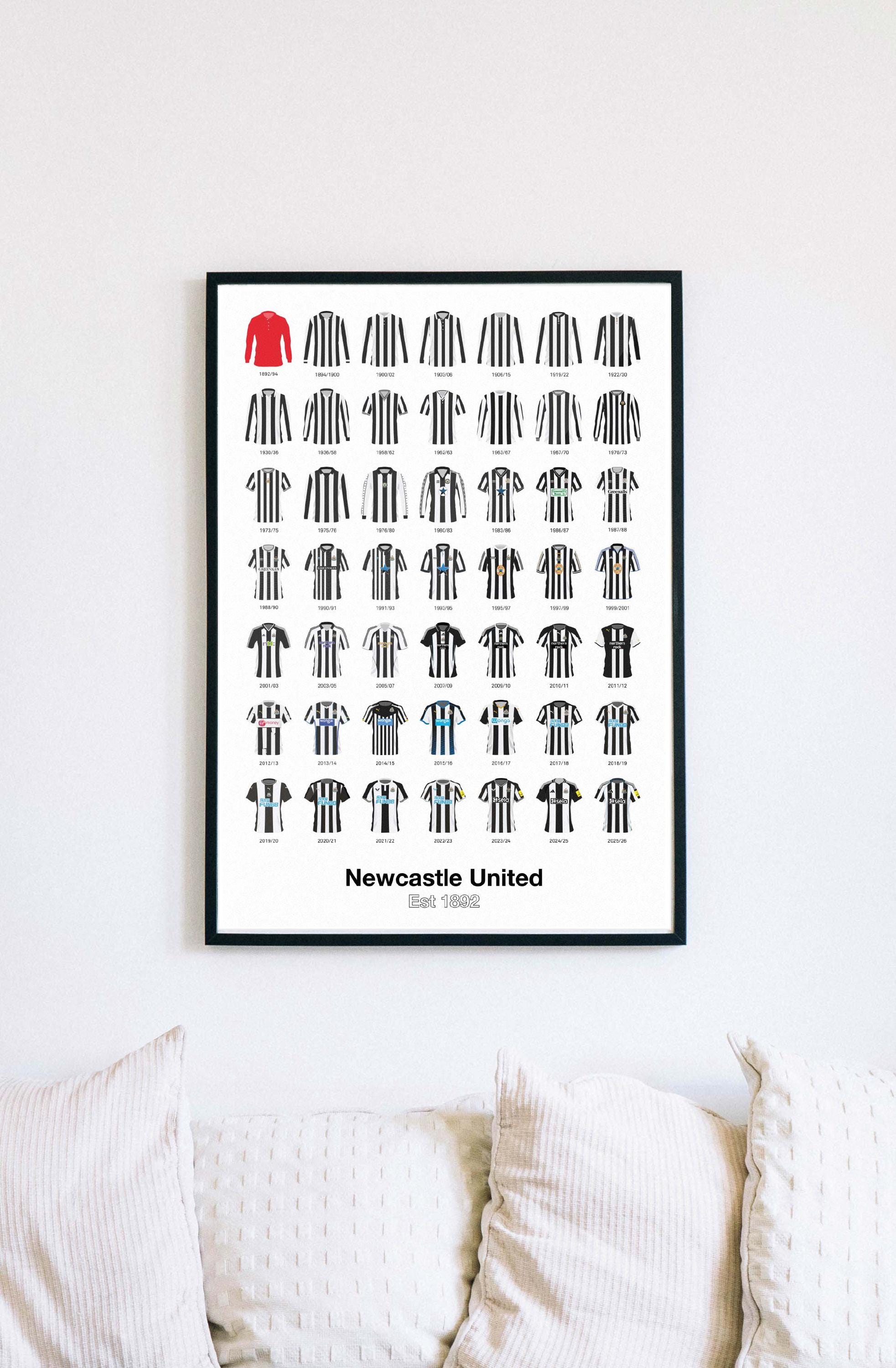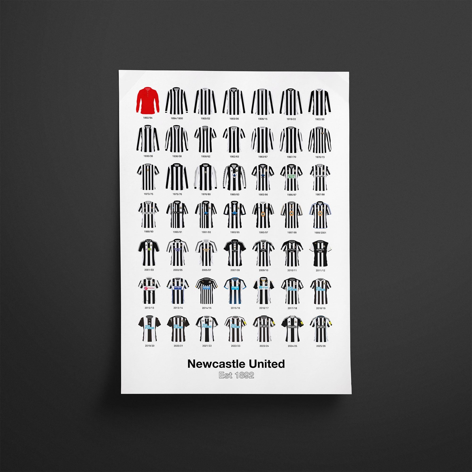 Newcastle United - a shirt history. Every home kit worn by the magpies throughout their history drawn with meticulous detail.